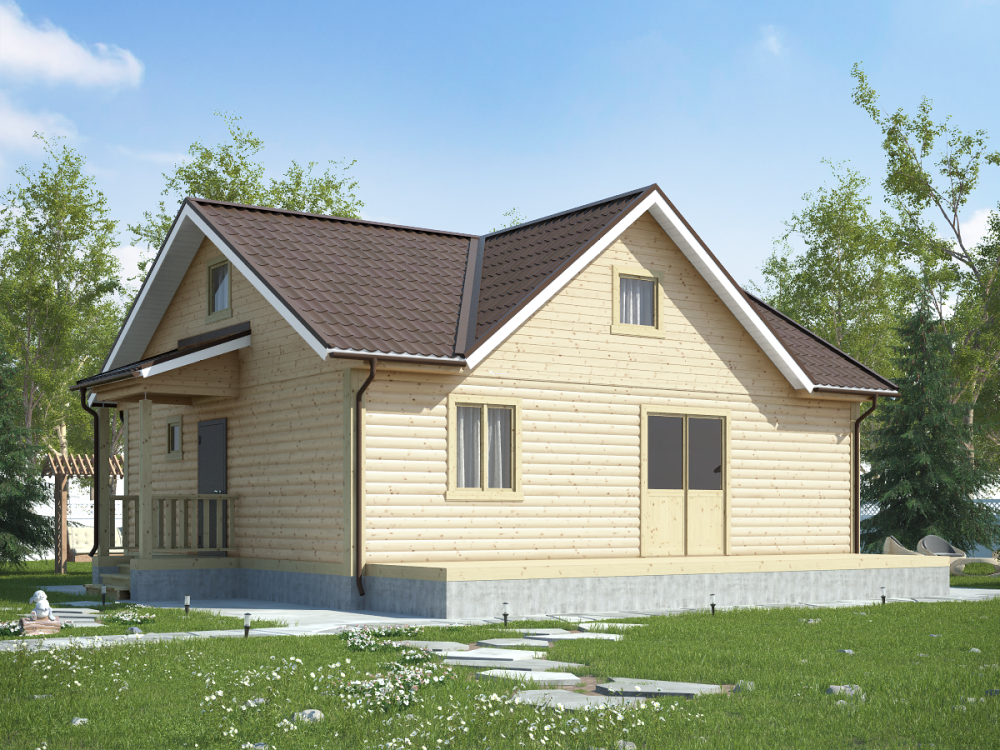 Вы можете выбрать нужный тип кровли. Крыша может быть четырехскатная, двускатная и вальмовая. Двухскатная крыша - самая востребована в малометражных постройках.